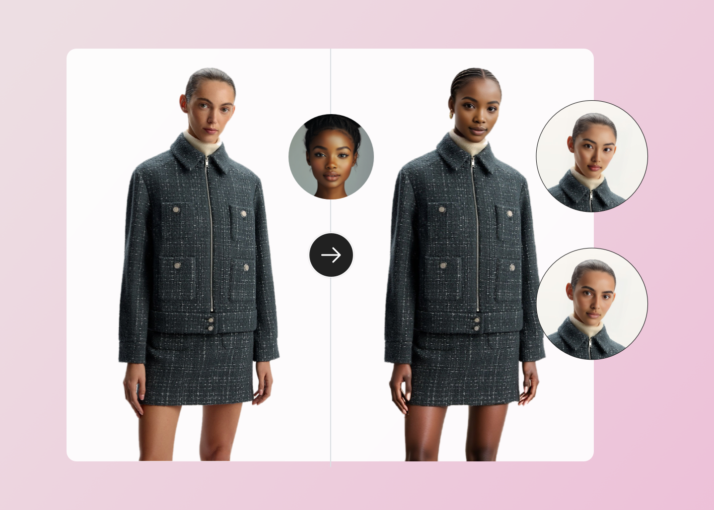 Ai智能设计,一键完成换模特/试款式/改爆款,让设计师轻松实现无限创意,降低服饰研发成本。